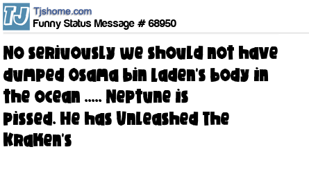 X is No seriuously we should not have dumped Osama bin Laden's body in the ocean ..... Neptune is pissed. He has Unleashed The Kraken's