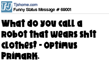 X What do you call a robot that wears sh1t clothes? - Optimus Primark.
