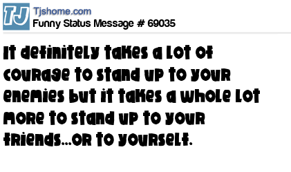 X  It definitely takes a lot of courage to stand up to your enemies but it takes a whole lot more to stand up to your friends...or to yourself.