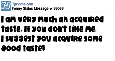 - # 68975 I am very much an acquired taste. If you don't like me, I suggest you acquire some taste.