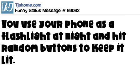 - # 133393 Walking through my house at night makes me wonder how I survived without a flashlight before I had a cell phone.
