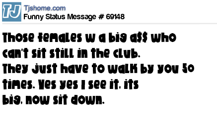 X says Those females w a big a$$ who can't sit still in the club. They just have to walk by you 50 times. Yes yes I see it, its big, now sit down.