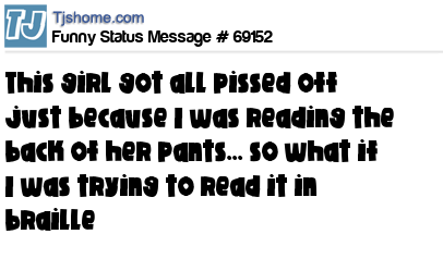- # 69370 This girl got all pissed off at me because I was reading the back of her pants......so what if I was trying to read it in braille