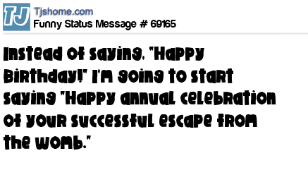X says Instead of saying, "Happy Birthday!" I'm going to start saying "Happy annual celebration of your successful escape from the womb."