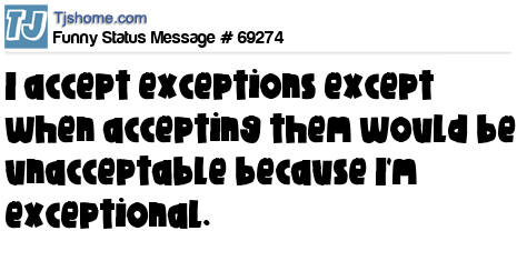 X I accept exceptions except when accepting them would be unacceptable because I'm exceptional.
