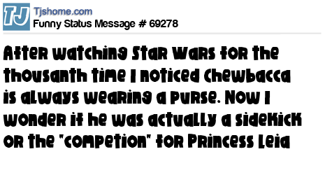 X After watching Star Wars for the thousanth time I noticed Chewbacca is always wearing a purse. Now I wonder if he was actually a sidekick or the "competion" for Princess Leia