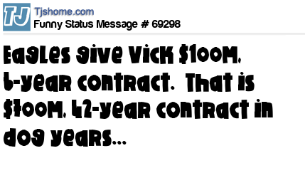 X Eagles give Vick $100M, 6-year contract. That is $700M, 42-year contract in dog years...