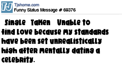 X is ❒Single ❒Taken ✔ Unable to find love because my standards have been set unrealistically high after mentally dating a celebrity.