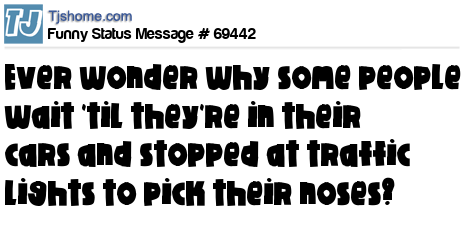 X Ever wonder why some people wait 'til they're in their cars and stopped at traffic lights to pick their noses?