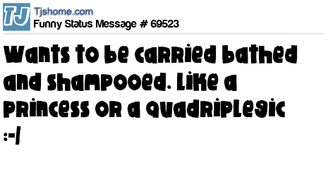 X wants to be carried bathed and shampooed. Like a princess or a quadriplegic :-/