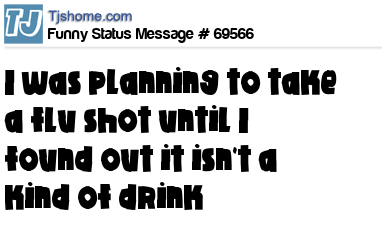 X I was planning to take a flu shot until I found out it isn't a kind of drink