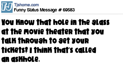 X You know that hole in the glass at the movie theater that you talk through to get your tickets? I think that's called an askhole.