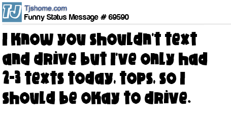 - # 157525 They say, "Don't Text and Drive" but I've had 3 maybe 4 texts all day so I'm good, right?