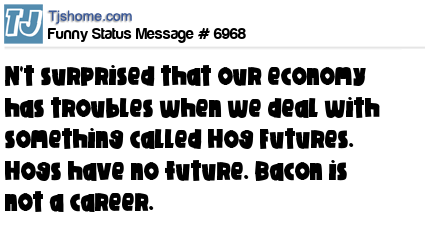 X n't surprised that our economy has troubles when we deal with something called Hog Futures. Hogs have no future. Bacon is not a career.