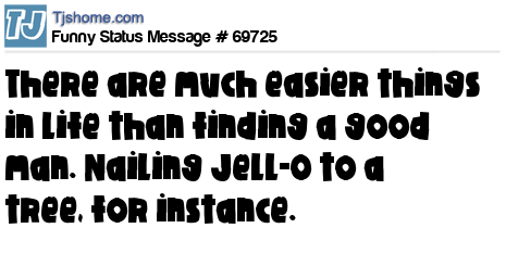 - # 18690 There are easier things in life than finding a good man... like nailing Jell-O to a tree, for instance.