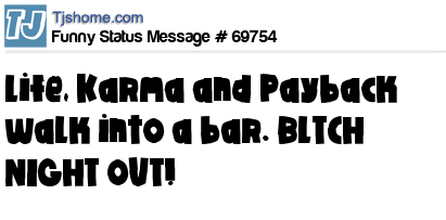 X  Life, Karma and Payback walk into a bar. BlTCH NIGHT OUT!