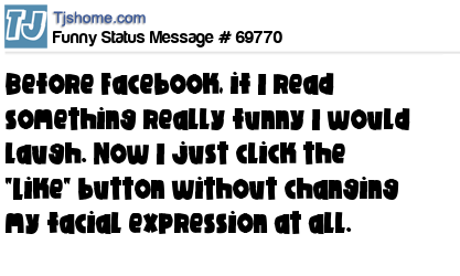 X Before Facebook, if I read something really funny I would laugh. Now I just click the "Like" button without changing my facial expression at all.