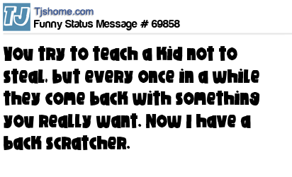 X says You try to teach a kid not to steal, but every once in a while they come back with something you really want. Now I have a back scratcher.