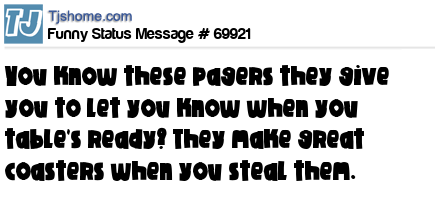 X  You know these pagers they give you to let you know when you table's ready? They make great coasters when you steal them.