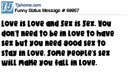X says Love is Love and Sex is Sex. You don't need to be in love to have sex but you need good sex to stay in love. Some people's sex will make you fall in love.