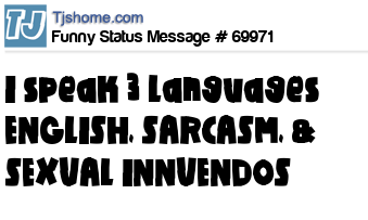 X says I speak 3 languages ENGLISH, SARCASM, & SEXUAL INNUENDOS