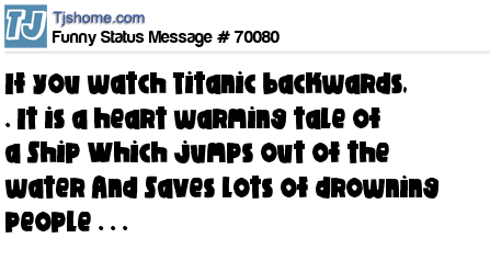 - # 91218 If you watch the Titanic backwards..Its about a magical boat that saves people