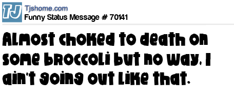 X Almost choked to death on some broccoli but no way, I ain't going out like that.