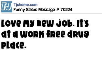 X Love my new job. It's at a work free drug place.