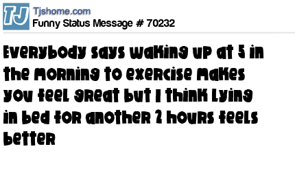X Everybody says waking up at 5 in the morning to exercise makes you feel great but I think lying in bed for another 2 hours feels better