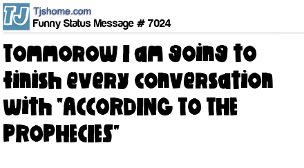 X says Tommorow I am going to finish every conversation with "ACCORDING TO THE PROPHECIES"