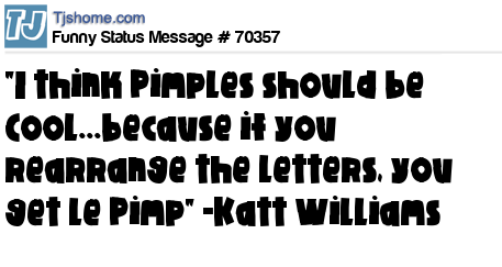 X "I think Pimples should be Cool...because if you rearrange the letters, you get Le Pimp" -Katt Williams