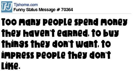 - # 24740 Too many people spend money they haven't earned, to buy things they don't want, to impress people they don't like. WHY?