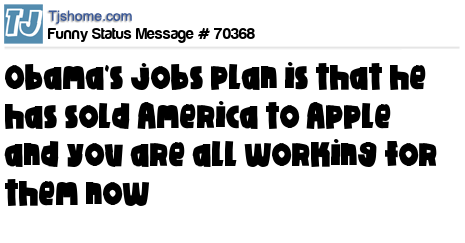 X Obama's jobs plan is that he has sold America to Apple and you are all working for them now
