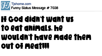 - # 18734 ATTENTION VEGETARIANS: If God didn't want us to eat animals, he wouldn't have made them out of meat