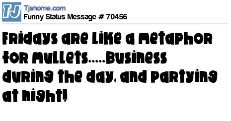 X Fridays are like a metaphor for mullets.....Business during the day, and partying at night!