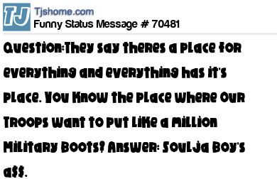 X is Question:They say theres a place for everything and everything has it's place. You know the place where Our Troops want to put like a million Military Boots? Answer: Soulja Boy's a$$.