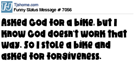 - # 16017 I asked God for a bike, but I know God doesn't work that way. So I stole a bike and asked for forgiveness.