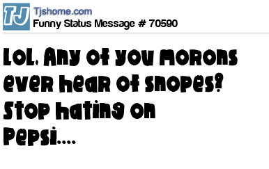 X says lol, Any of you morons ever hear of snopes? Stop hating on Pepsi....