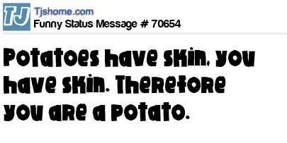 - # 106803 Potatoes have skin. I have skin. Therefore, I am a potato.