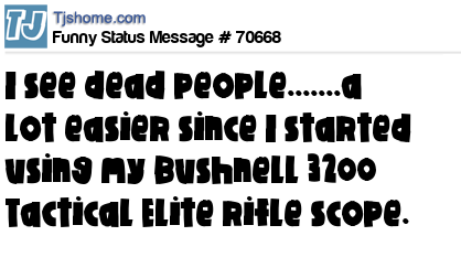 X I see dead people.......a lot easier since I started using my Bushnell 3200 Tactical Elite rifle scope.