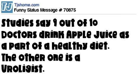 X Studies say 9 out of 10 Doctors drink Apple Juice as a part of a healthy diet. The other one is a Uroligist.