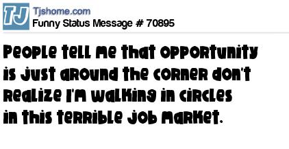 X is People tell me that opportunity is just around the corner don't realize I'm walking in circles in this terrible job market.