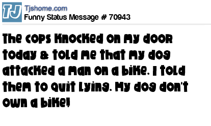 - # 99465 The police knocked on my door last night and said my dog had chased someone on a bike... I called Bullcr*p..... My dog doesn't have a bike..