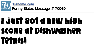- # 95753 I'd like to thank Tetris for making me really good at loading my dishwasher.