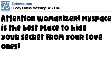 X is Attention womanizer! Myspace is the best place to hide your secret from your love ones!