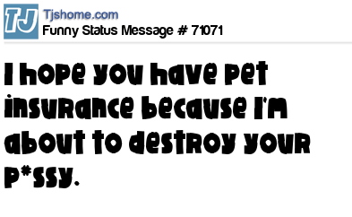 X is I hope you have pet insurance because I'm about to destroy your p*ssy.
