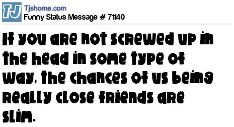 X is If you are not screwed up in the head in some type of way, the chances of us being really close friends are slim.
