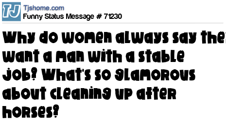- # 204620 Why do women always say they want a man with a stable job... What’s so glamorous about cleaning up after horses?