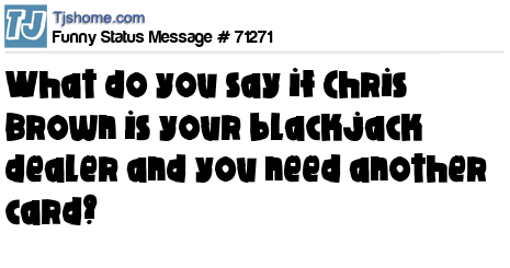 X What do you say if Chris Brown is your blackjack dealer and you need another card?