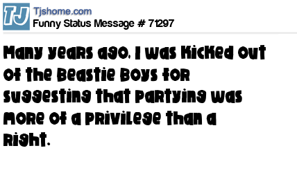 - # 153318 Thank god the Beastie Boys fought for my right to party I'm just sitting on my couch though